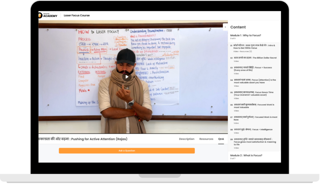 कुछ भी पचाने के लिए पहले उसकी भूख होना अत्यंत आवश्यक है। भूख जितनी अधिक होती है, भोजन उतना ही अधिक स्वादिष्ट लगता है और उतने ही अच्छे से पचता है। अतः सबसे पहले हम आपकी Laser Focus को जानने, समझने और सीखने की भूख को इतनी बढ़ाएँगे कि आप इस Course में मिलने वाले समस्त ज्ञान को भली भाँति पचा लो।